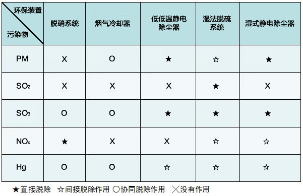 2)多個設備處理多種污染物,并為其它設備脫除污染物創造協同條件;